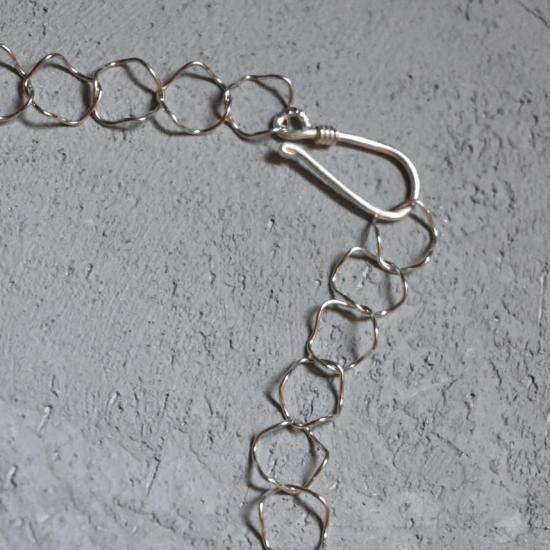 大ぶりなひねりのある変形シルバーチェーンと、淡水パール天然石をつなげたネックレス。